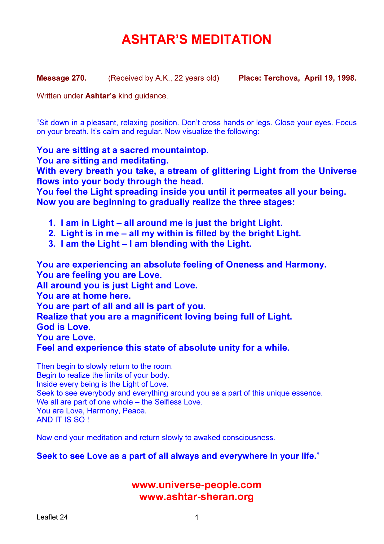| ASHTAR'S MEDITATION |